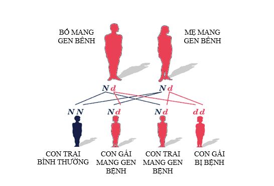 - 25% số con là người hoàn toàn khỏe mạnh không mang gen bệnh